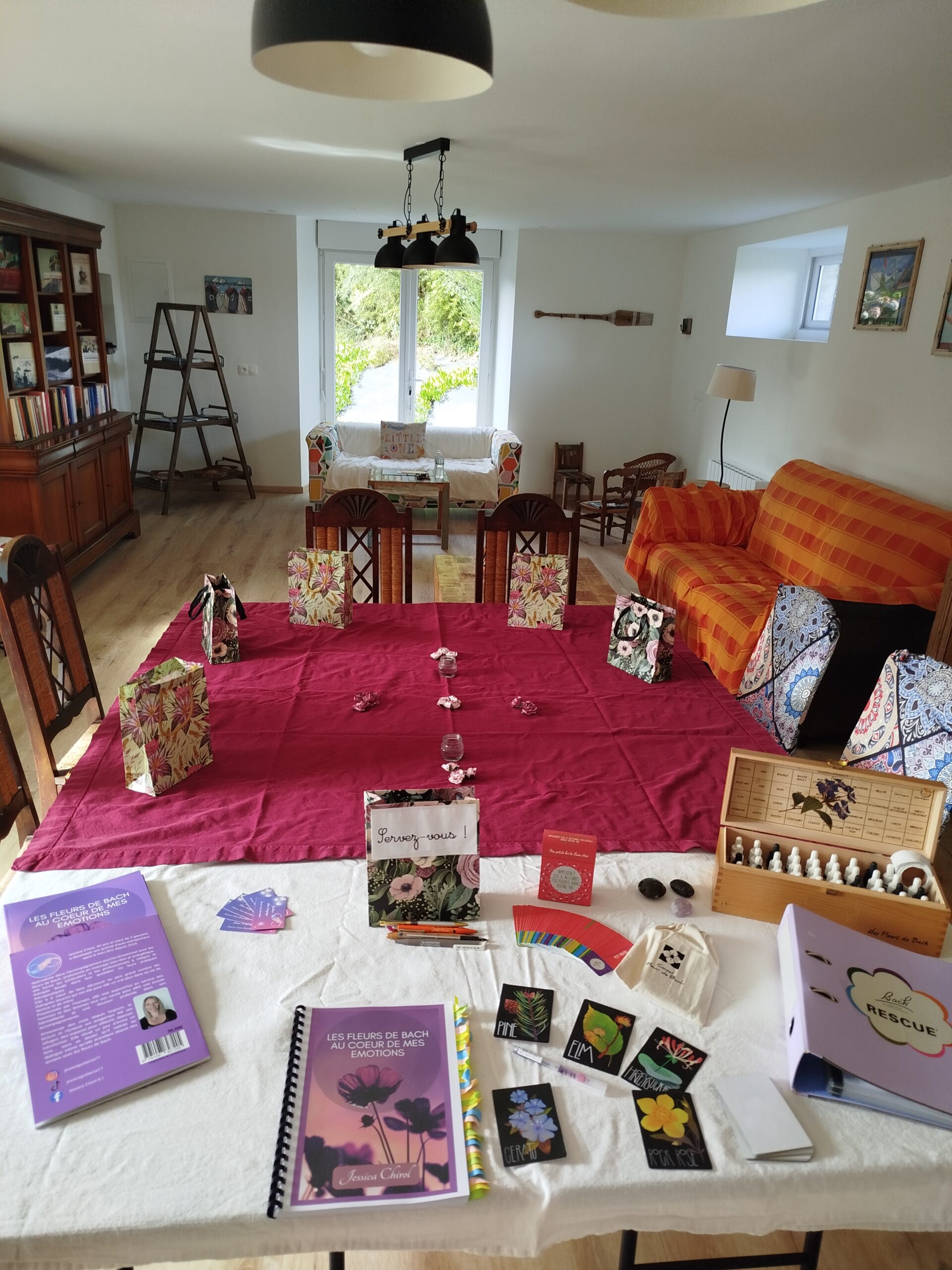 Accueil et gestion des émotions par des exercices divers et création d’un flacon personnalisé d’elixirs floraux.